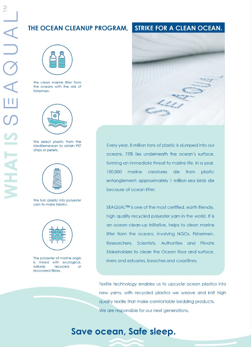 • Seaqual™ Fabric – ύφασμα κατασκευασμένο από ανακυκλωμένο πλαστικό που συλλέγεται από τους ωκεανούς, για φιλική προς το περιβάλλον επιλογή.