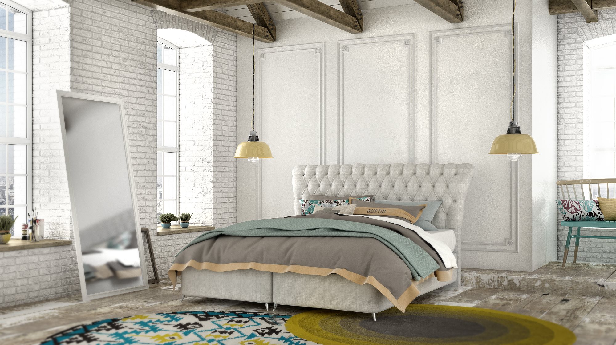 Sleep in peace in a relaxing bedroom furnished with the sophisticated design of the Vulcan headboard.