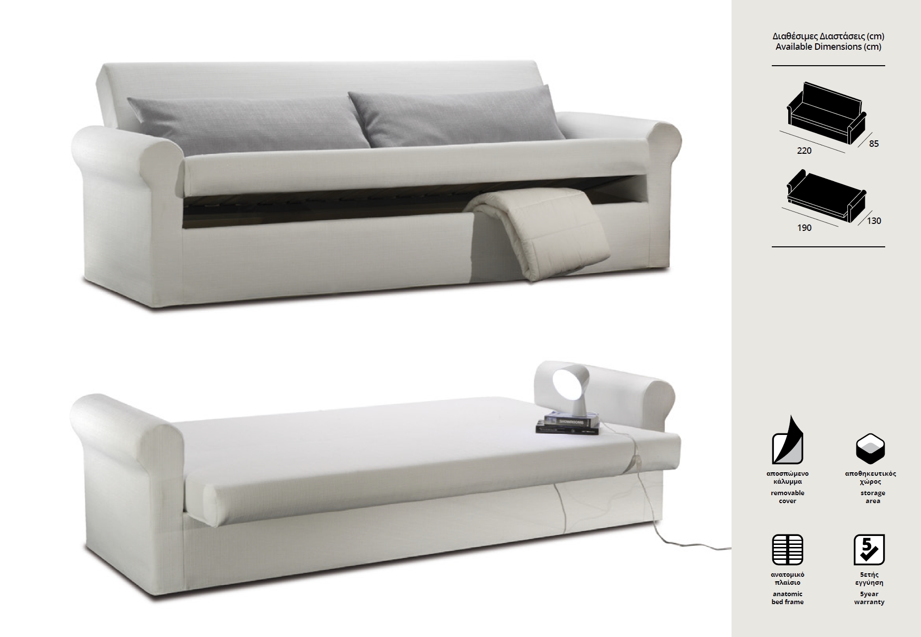 ΠΕΡΙΓΡΑΦΗΟ 3-θέσιος καναπές με τη δυνατότητα να μετατρέπεται σε διπλό κρεβάτι. Διαθέτει αφαιρούμενα καλύμματα.