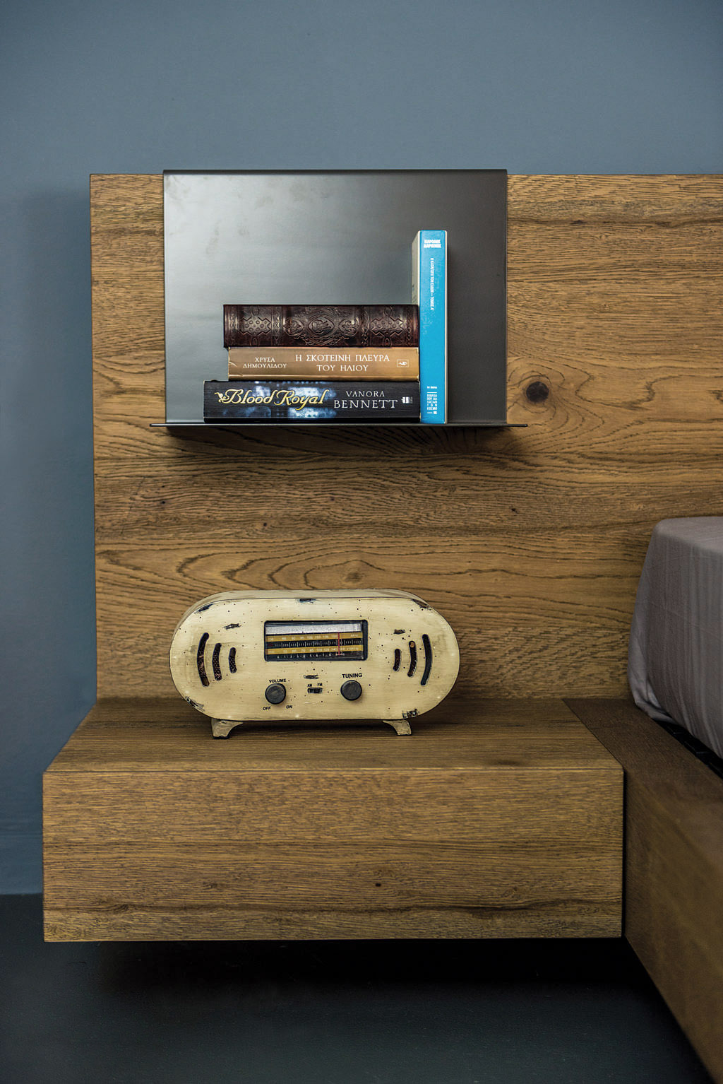 Το μεγάλων διαστάσεων κεφαλάρι που συνδυάζει το ξύλο με το ύφασμα και τους πρακτικούς μεταλλικούς σερβιτόρους μας δίνει την αίσθηση ενός μοντέλου με σύγχρονο ύφος.