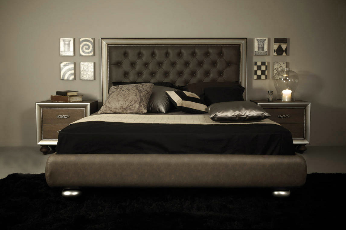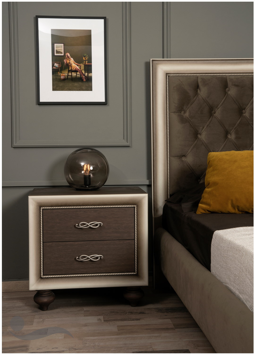 Ακολουθεί την κλασική γραμμή και κάνει τη διαφορά υιοθετώντας ένα εκλεπτυσμένο ύφος με τη χειροποίητη πατίνα στο πλαίσιο των κομοδίνων και στο κεφαλάρι.